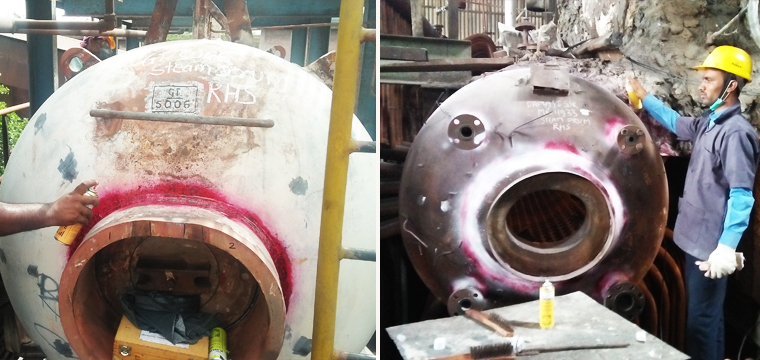 Based on the properties of capillary action, or the phenomenon of a liquid rising or climbing when confined to a small opening due to surface wetting properties of the liquid,Penetrant testing is used for finding surface breaking discontinuities on relatively smooth, nonporous surfaces.